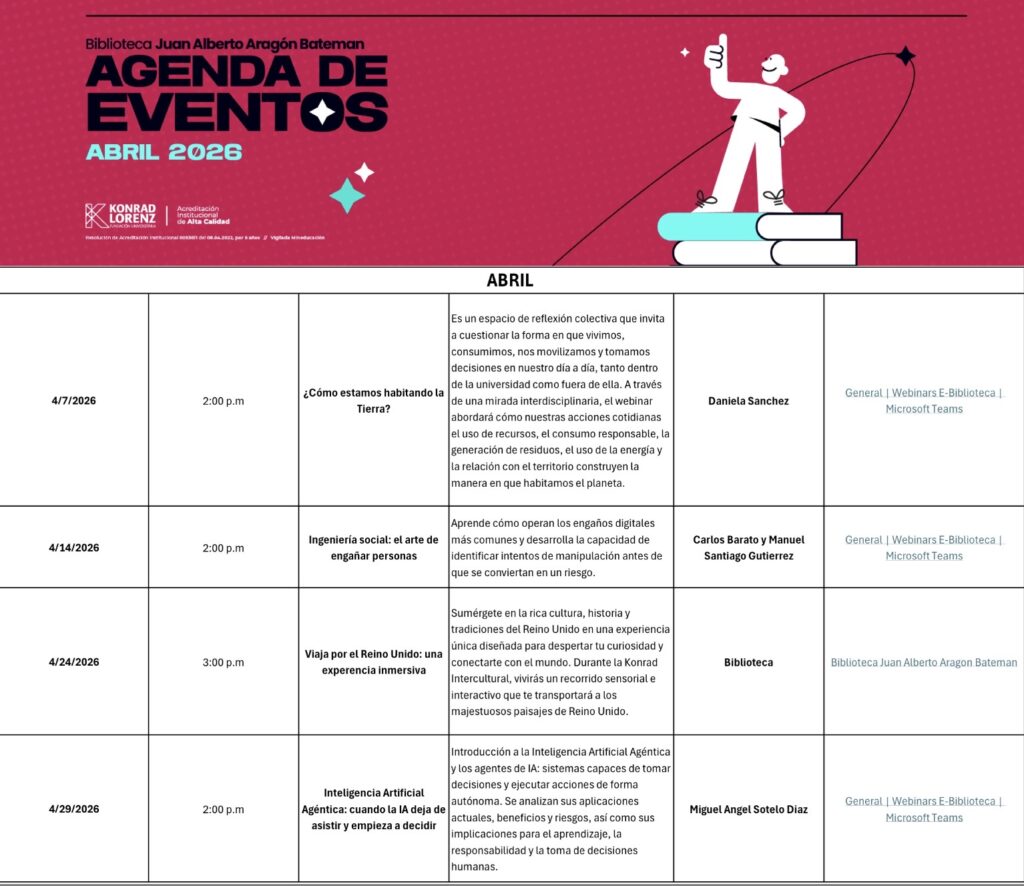 Agenda de eventos de la biblioteca: Abril 2026