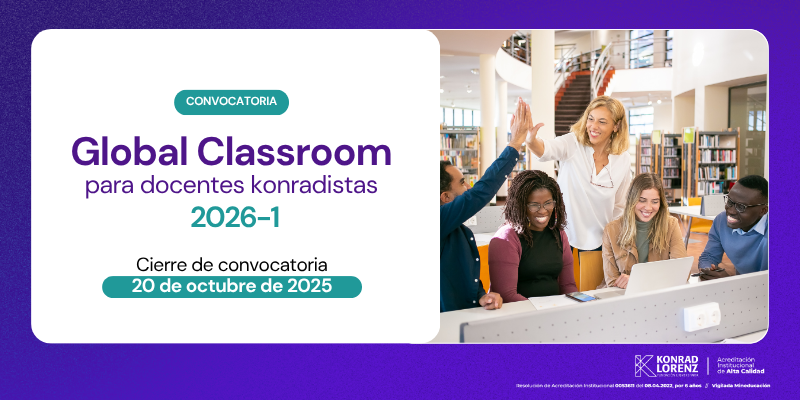 Durante el 2020 y 2021 gracias al apoyo de nuestros docentes, los estudiantes konradistas tuvieron la oportunidad de interactuar con otras comunidades académicas y culturas a través de herramientas tecnológicas implementando estrategias como las clases espejo y COIL (Collaborative Online International Learning). A partir de 2022 dimos un paso más y presentamos la estrategia GLOBAL CLASSROOM que recoge y potencia los resultados de estas iniciativas.