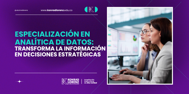 La Especialización en Analítica de Datos de la Fundación Universitaria Konrad Lorenz está diseñada para profesionales de todas las áreas del conocimiento que deseen fortalecer sus competencias en análisis, interpretación y gestión de datos.