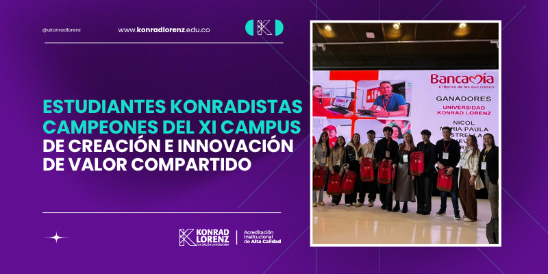 La Escuela de Negocios de la Fundación Universitaria Konrad Lorenz se destacó en la XI edición del Campus de Creación e Innovación de Valor Compartido, organizado por la Cámara de Comercio de Bogotá, un evento que promueve la generación de soluciones empresariales sostenibles y con impacto social.