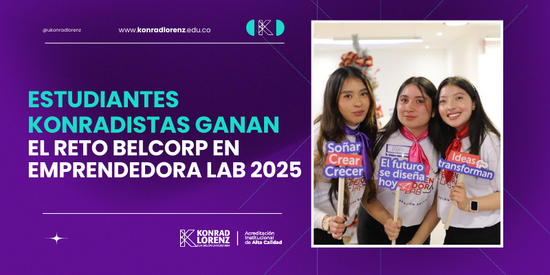 La Fundación Universitaria Konrad Lorenz celebra con orgullo el logro de un grupo de estudiantes de la Escuela de Negocios que obtuvo el primer puesto en el reto Belcorp del programa Emprendedora Lab 2025. Este reconocimiento destaca su visión estratégica, creatividad, pensamiento crítico y excelencia académica, atributos que reflejan el sello distintivo de nuestra institución.