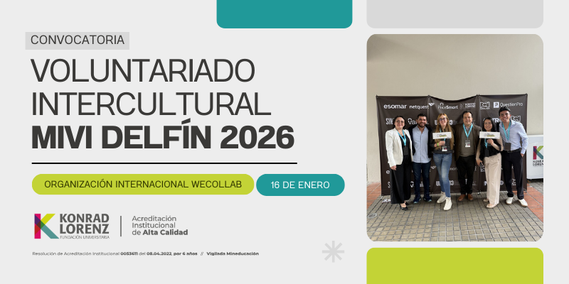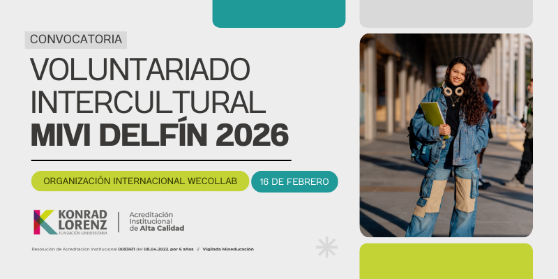 La Cancillería de la Fundación Universitaria Konrad Lorenz, en el marco del programa delfín y la organización internacional WeCollab convocan a los estudiantes de pregrado, posgrado, graduados, profesores y personal administrativo a aplicar a una beca para estancia de voluntariado internacional.