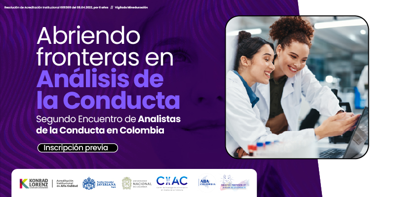 La Fundación Universitaria Konrad Lorenz, junto con la Universidad Nacional de Colombia, la Pontificia Universidad Javeriana, el Centro de Investigación en Análisis de la Conducta (CIIAC) y ABA Colombia, se une para realizar el Segundo Encuentro de Analistas de la Conducta en Colombia: abriendo fronteras en análisis de la conducta, construyendo país.